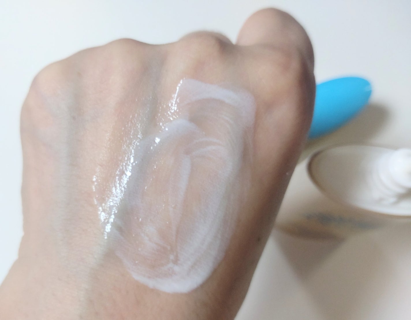 The sunscreen is gentle on the skin, can be washed off easily with soap, used as a makeup primer, has a refreshing citrus fragrance, and is mask friendly.