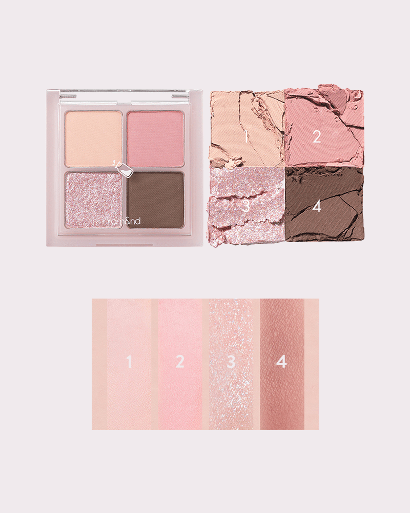 Eye shadow palette with four harmonious shades ranging from matte to glittery enables versatile eye makeup from everyday wear to special occasions. The smooth and fine particles create a defined look and are infused with oil-blotting ingredients for prolonged wear.