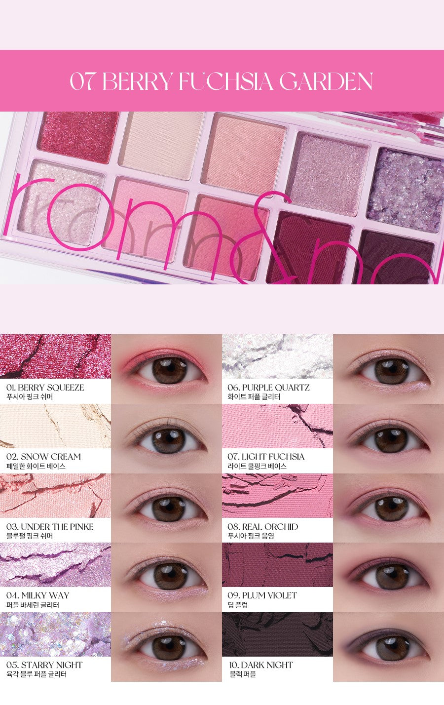 rom&nd's Better Than Palette Energetic eyeshadow palettes provide remarkable contrast between dark and light shades for improved layerability.