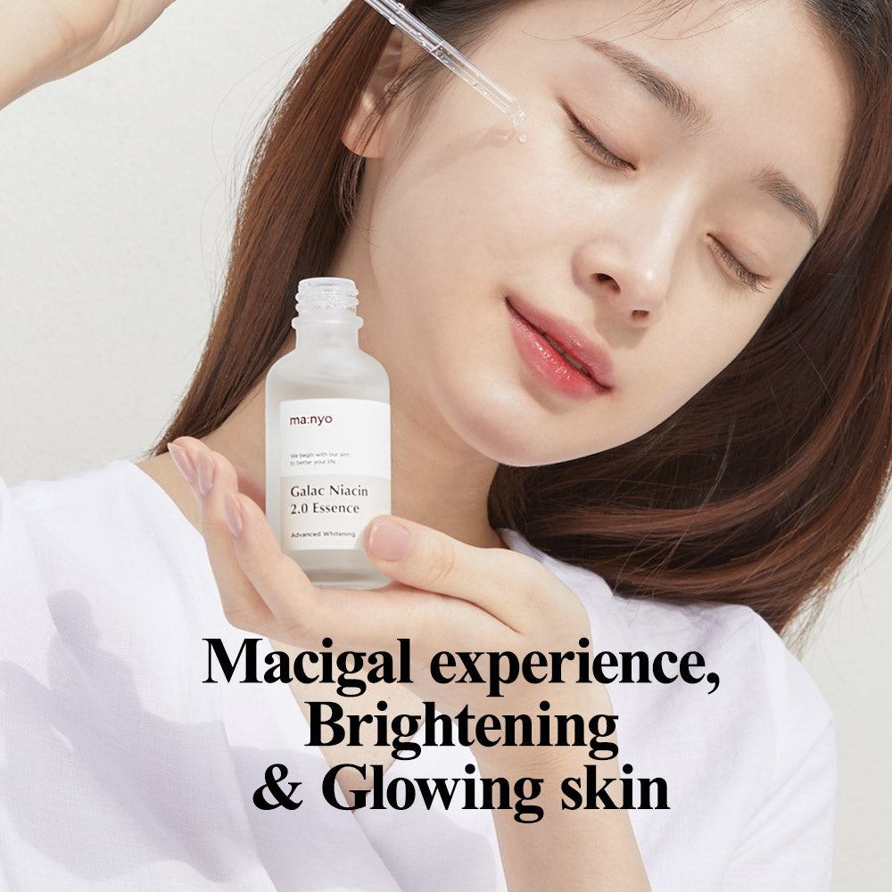 The Galac Niacin 2.0 Essence enhances visible radiance and brightness in just 14 days. The doubled amount of Niacinamide helps defend melanin to create stronger and flawless skin.
