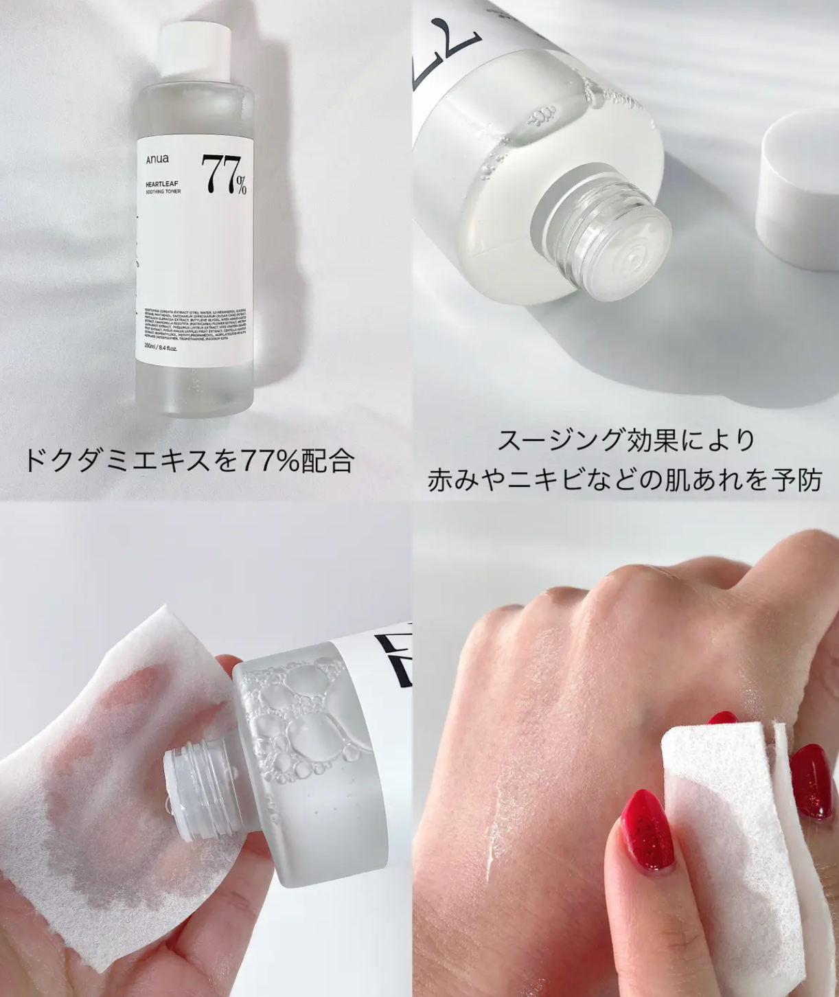 Anua Heartleaf 77% Soothing Toner is a facial toner for optimal hydration, irritation and redness relief. It contains heartwort, betaine, panthenol, sugar cane and common purslane extracts to accelerate regeneration, reduce wrinkles, soothe and heal skin.