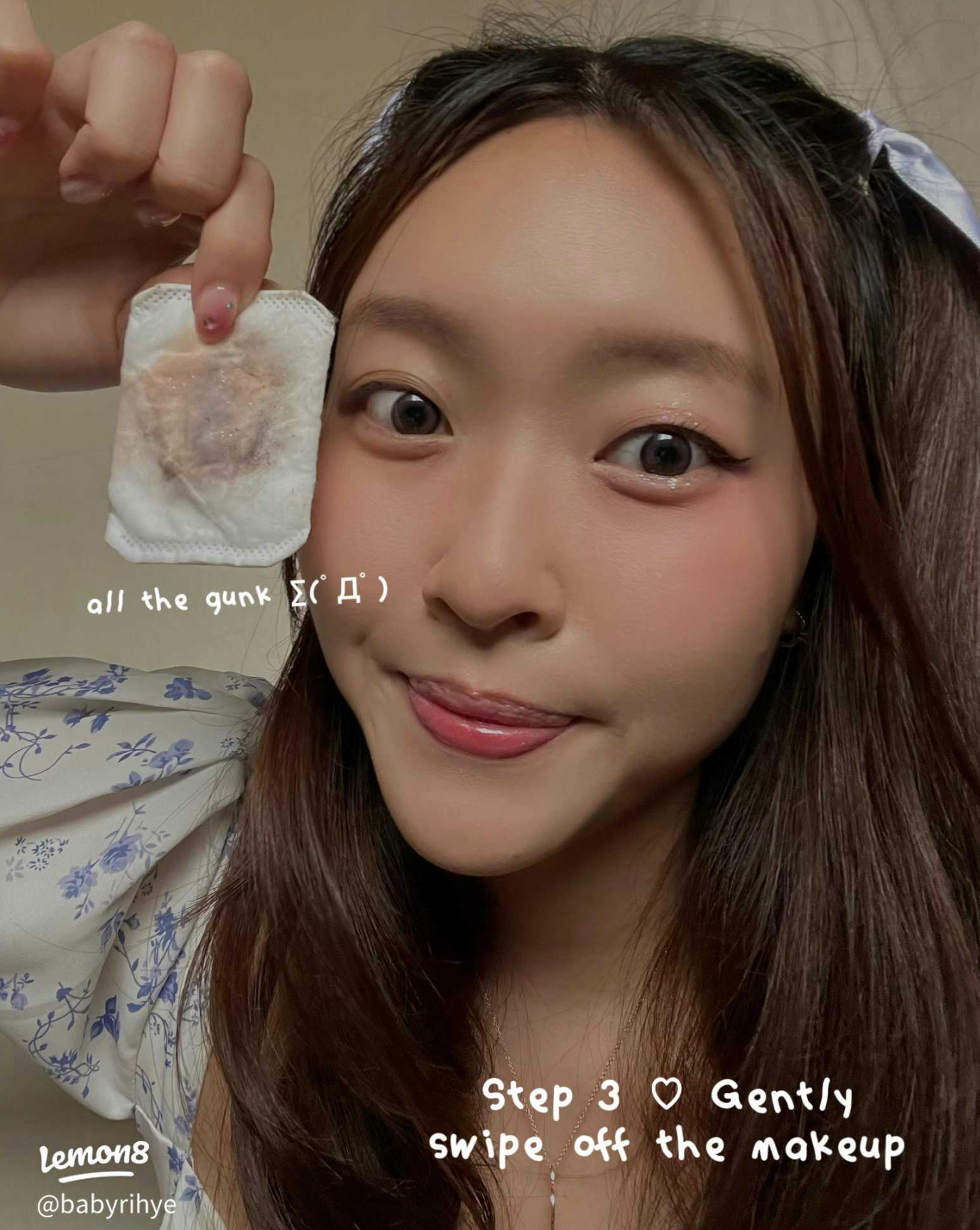 The formula easily lifts makeup so there is no need to rub with force. Continue cleansing until cotton pad no longer becomes dirty.