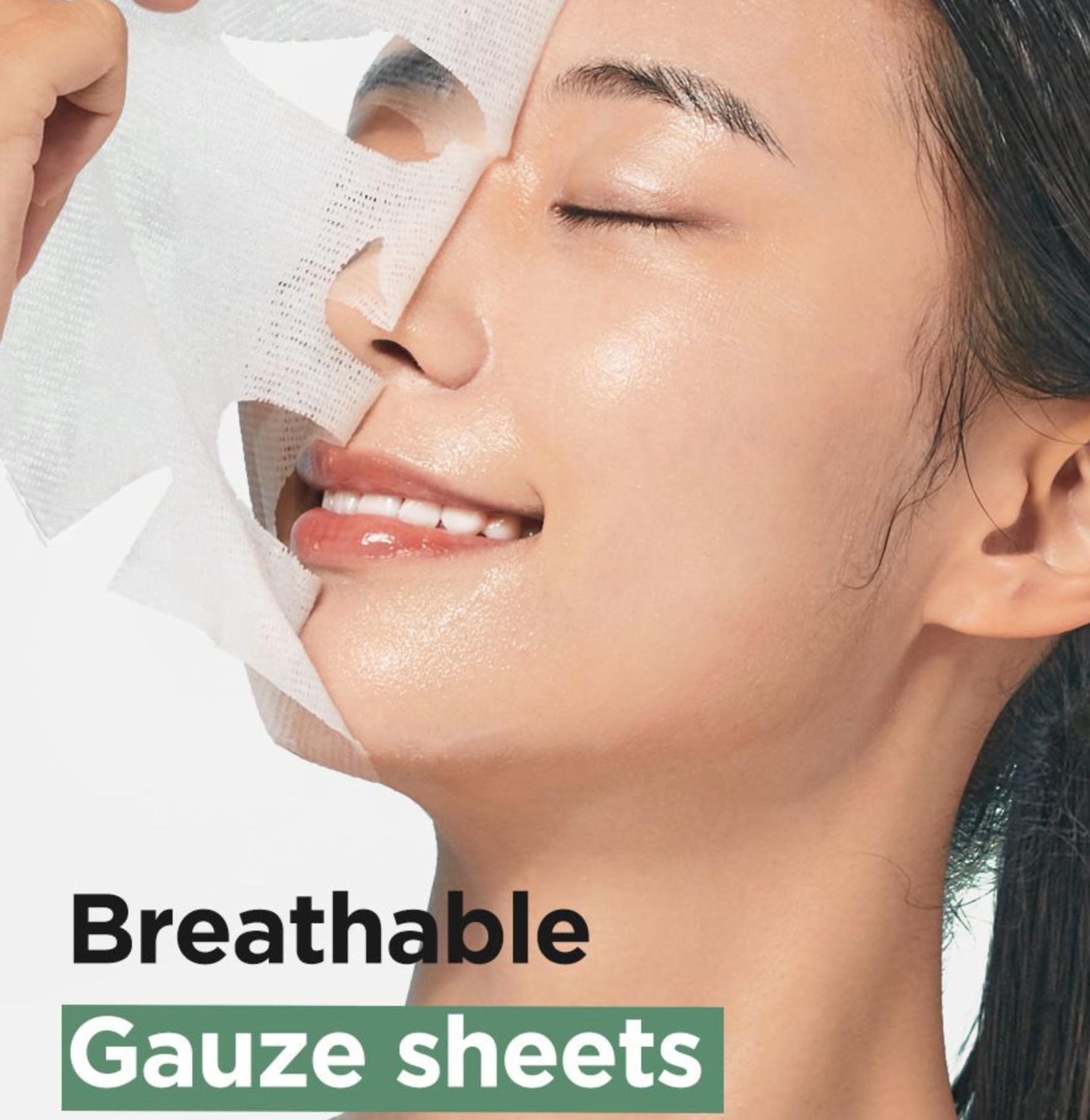 The ISNTREE Mugwort Gauze Mask contains 45% mugwort extract and soothes the skin effectively, while the breathable gauze cloth made of 100% cotton adheres particularly well without clogging the pores. In addition, thanks to hyaluronic acid, the skin is intensively supplied with moisture and the moisture-oil balance of the skin is restored.
