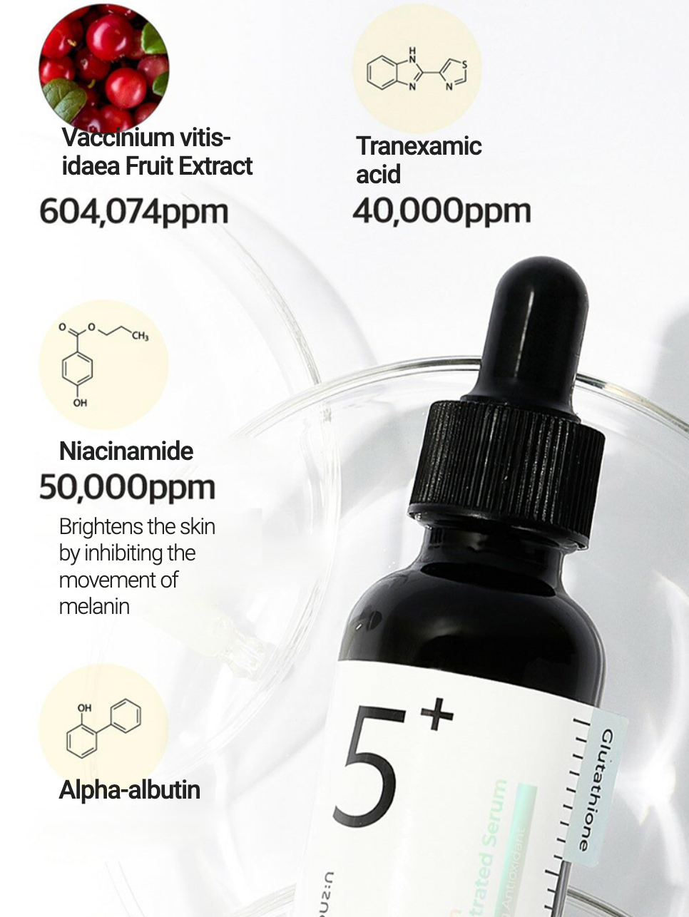 - Contains 40,000ppm of Tranexamic acid, 50,000ppm of Niacinamide that brightens the skin by inhibiting the movement of melanin.