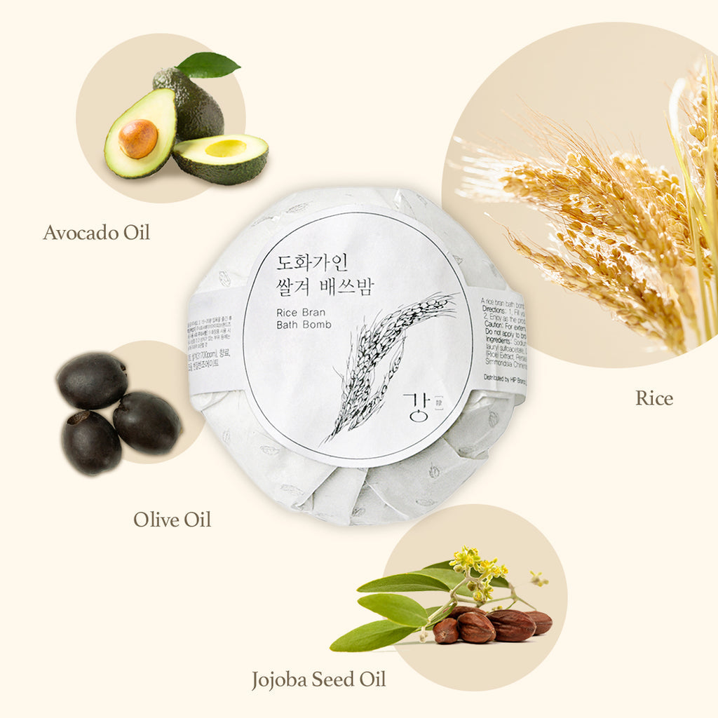 - This bath bomb soothes not only the skin, but the mind as well with the gentle aroma of rice bran to help you destress.