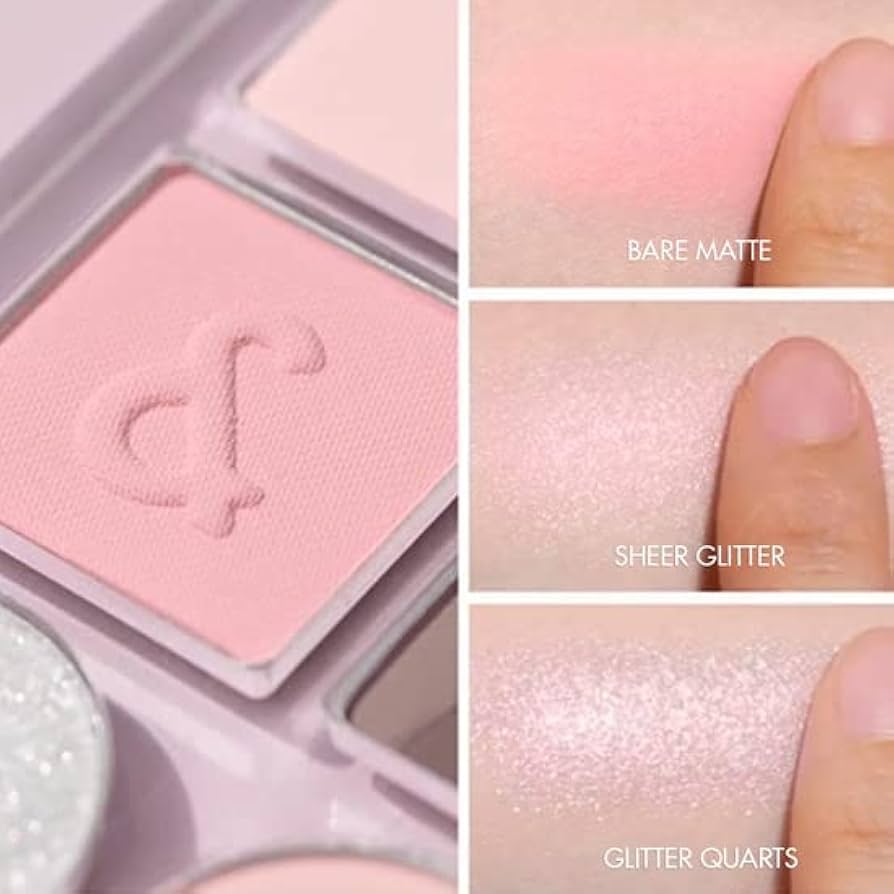 The bare matte shadows blur fine lines with outstanding adherence for long-lasting makeup. it refined and glowy glitters help create clear and sparkling looks.