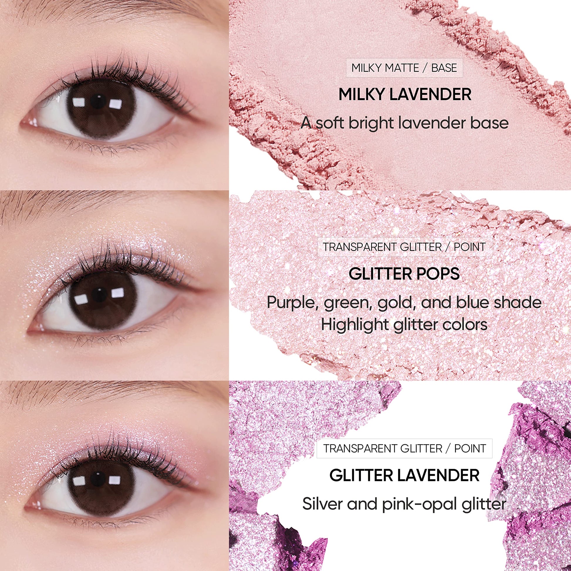 *Three transparent and dazzling textures on the eyelids