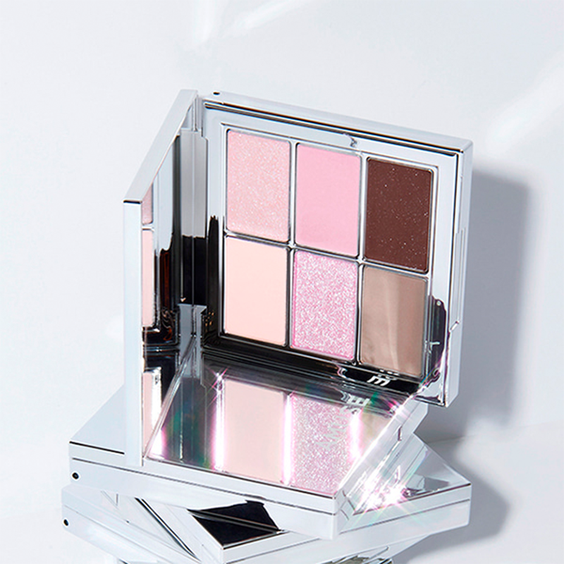 A vegan eyeshadow palette featuring transparent glitter added on 6 blendable light shades that create various moods with 3 different textures - sheer matt, sheer satin, sheer glitter.